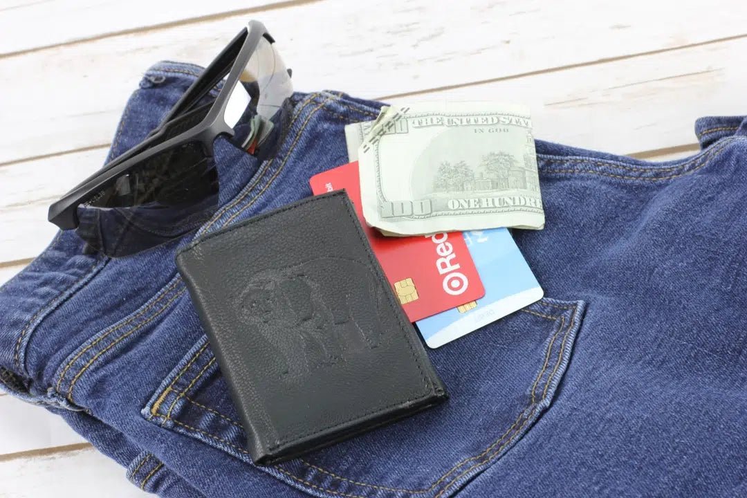 Experience the exquisite craftsmanship of the Black Bear Embossed Leather Trifold - the perfect blend of style and security. Elevate your daily accessories with this modern Western wallet, featuring a unique black bear embossing. Made with soft, custom leather, it offers both comfort and functionality with 9 card slots, a clear ID holder, and dedicated cash space.