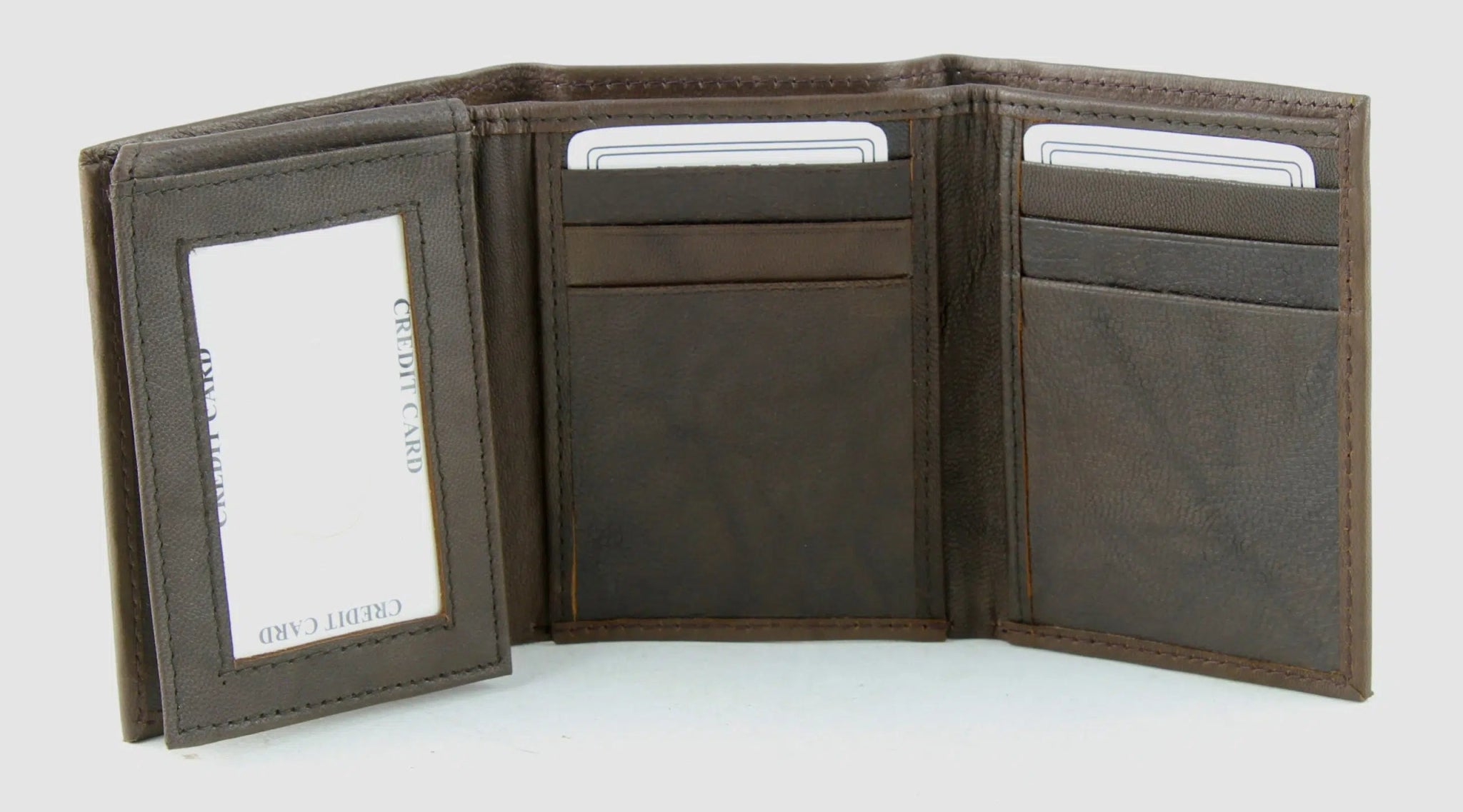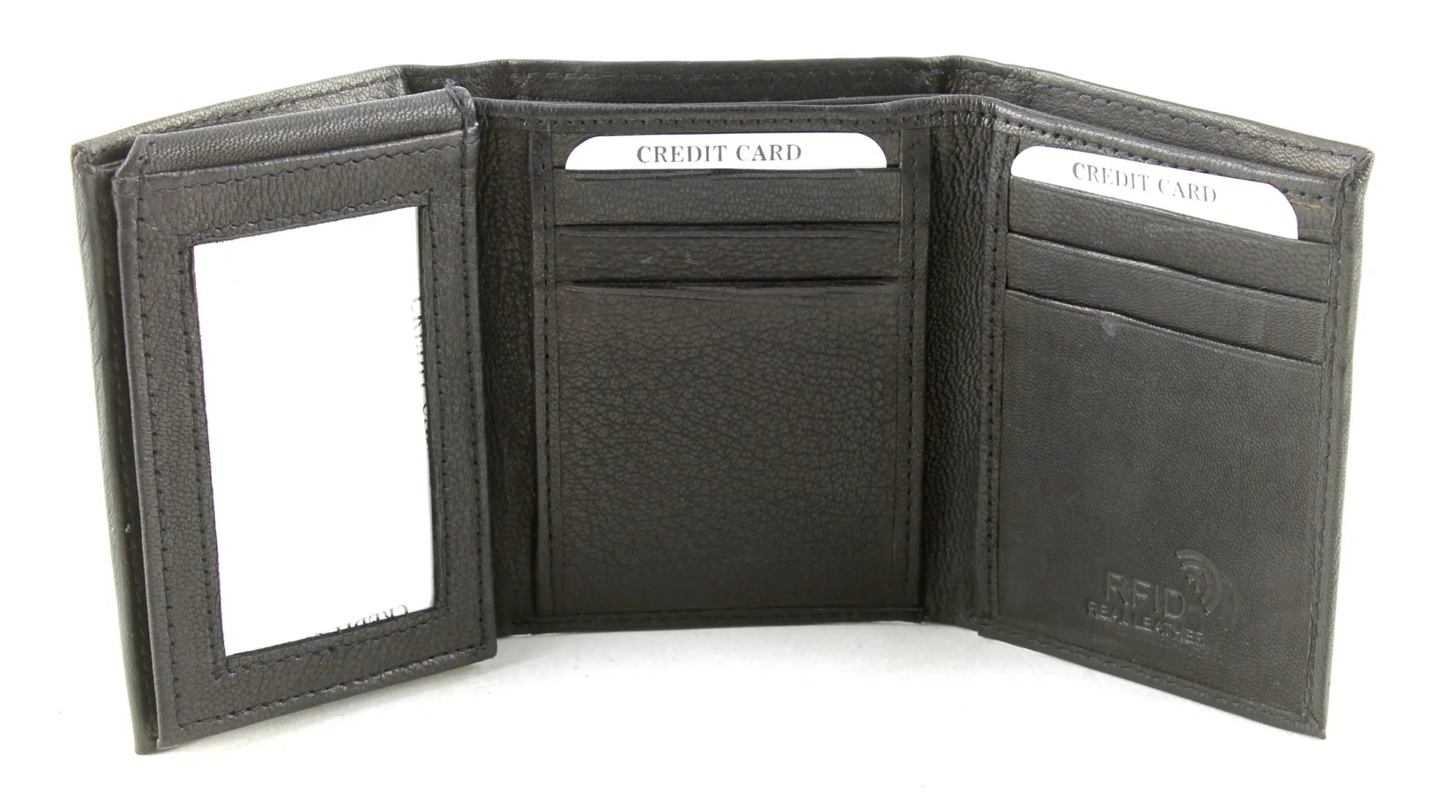 Protect your sensitive information with RFID-blocking technology. Choose from classic black, rich brown, or versatile tan to complement your style. Dimensions when closed: 3" x 4". Embrace the natural variations and character of genuine leather with this fine, high-quality product.