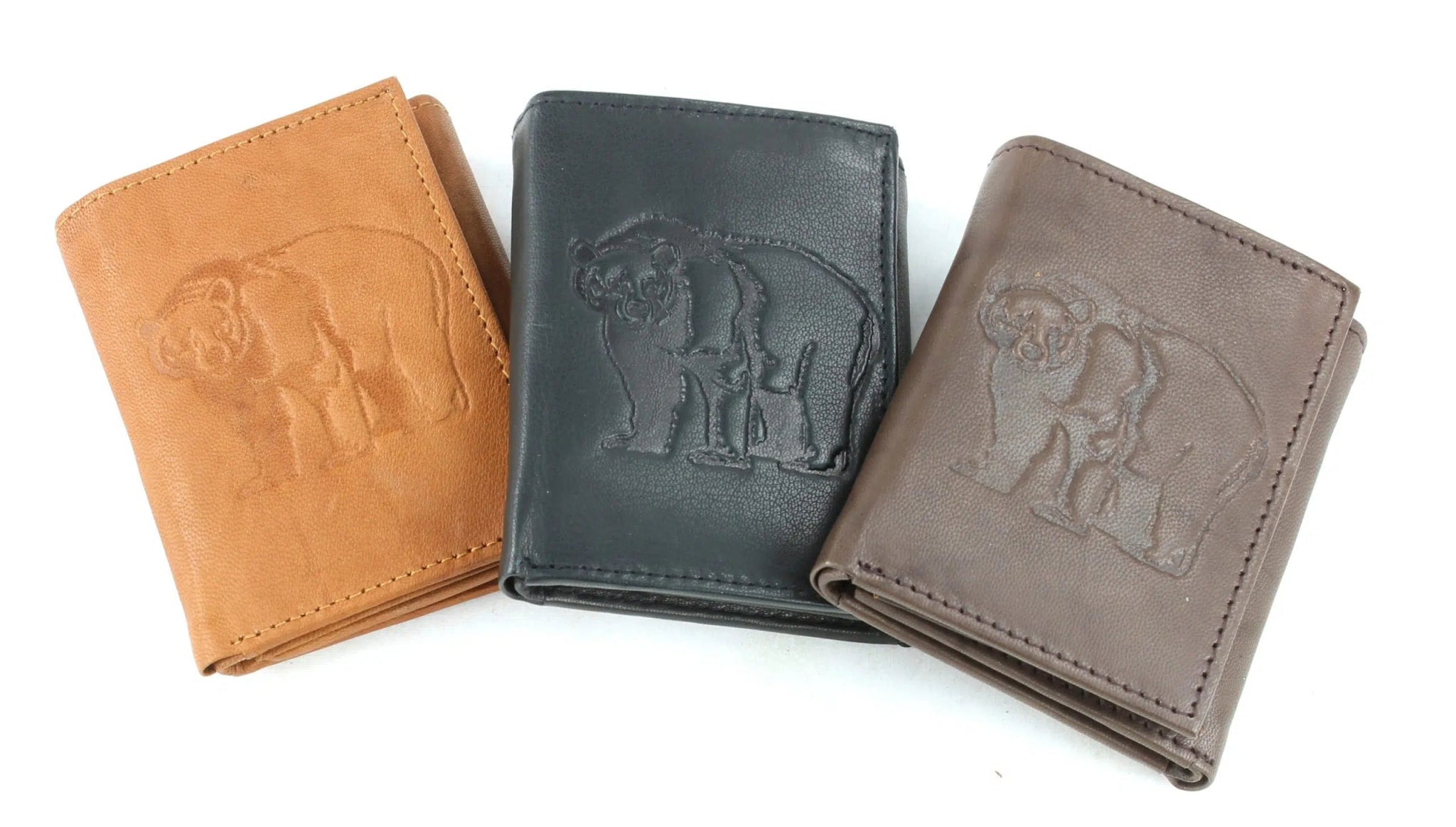 Bear Body Embossed Leather Trifold RFID Blocking Wallet EMB-03BB