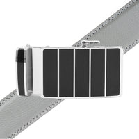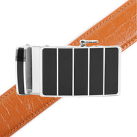 Take your look to the next level with this Men's Genuine Leather Sliding Buckle Ratchet Belt. The auto-locking buckle slides along strong rubber teeth for 1/8-inch adjustments, so you get a perfect fit. Choose between 14 genuine leather belt straps and the buckle is made of a strong alloy for long-lasting wear. Cut the 46" belt down to your perfect size and easily remove or reattach the buckle for ultimate versatility. Get the perfect fit every time with this stylish and durable belt.