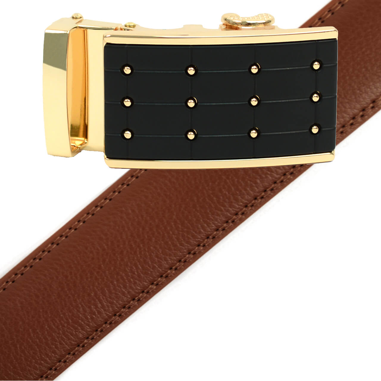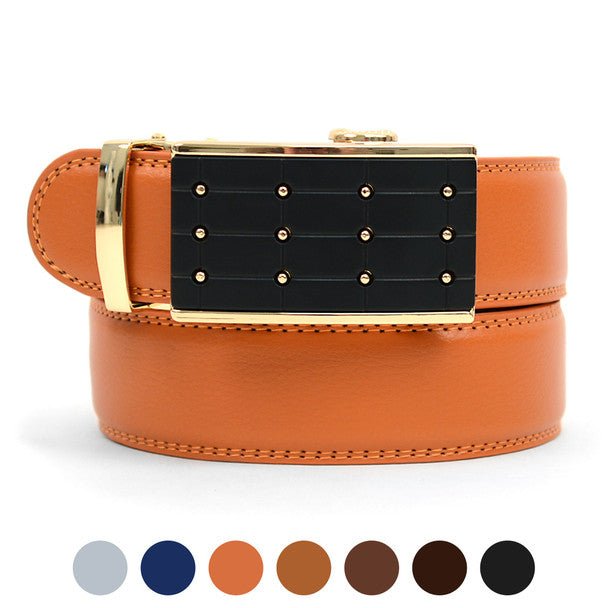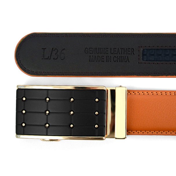 Men's Genuine Leather Sliding Buckle Ratchet Belt - MGLBB4
