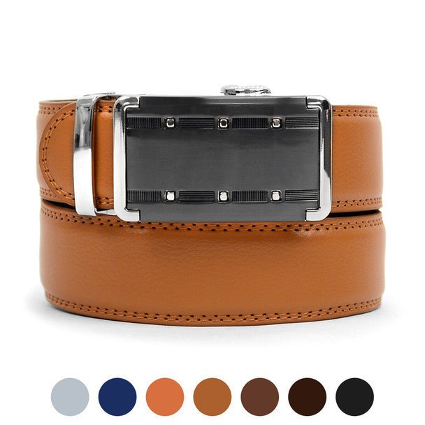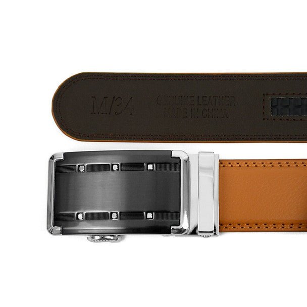 Men's Genuine Leather Sliding Buckle Ratchet Belt -MGLBB9