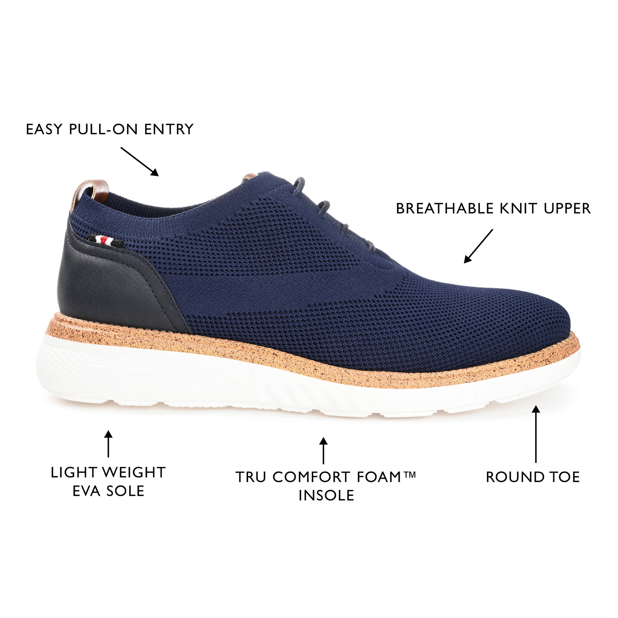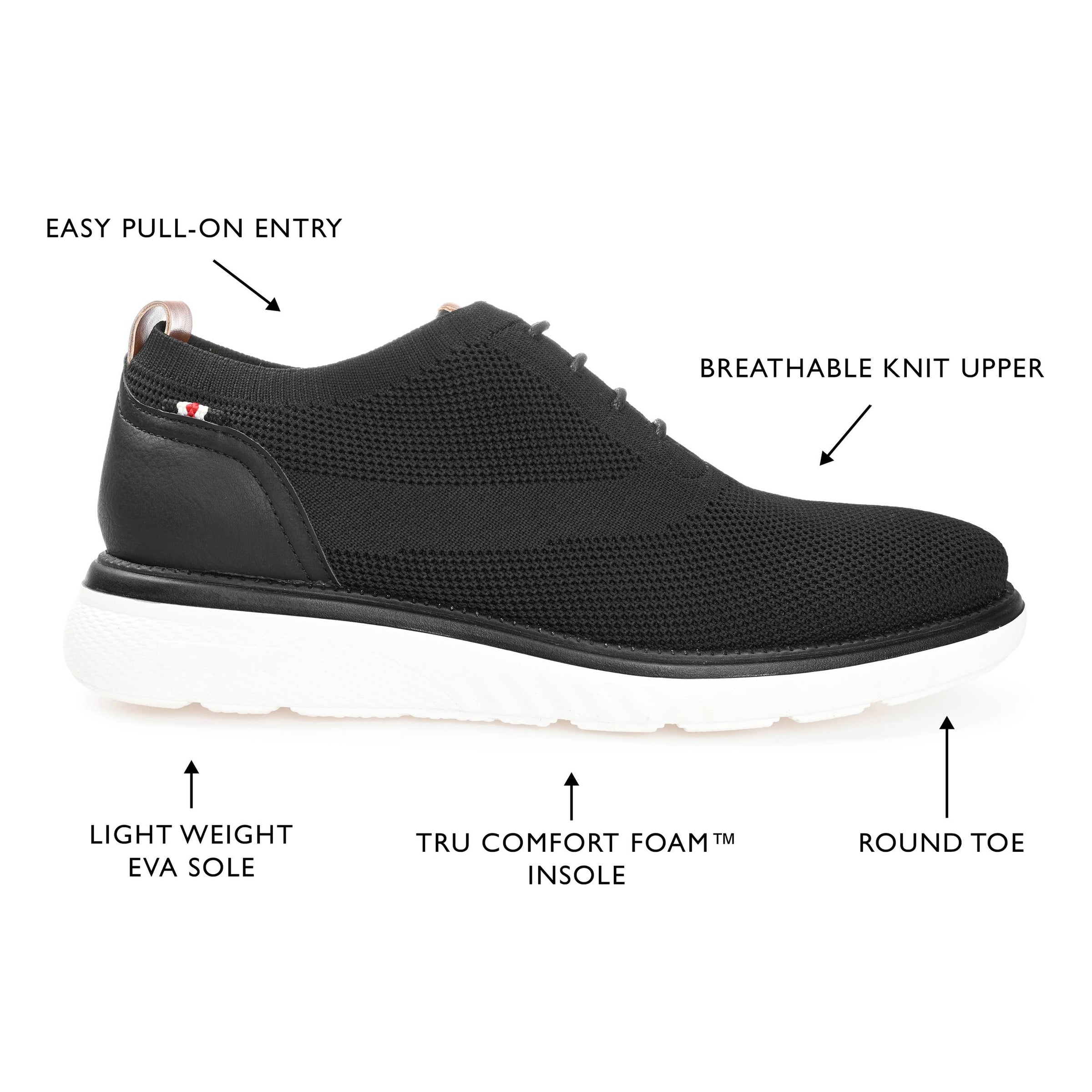 Textured fabrics add to the vintage feel of this timeless design. The Lamont derby by Vance Co. has high-quality imitation leather accents and knit fabric uppers for a striking contrast. This lace-up design is finished with a 6 mm Tru Comfort Foam™ footbed and a flexible phylon sole.