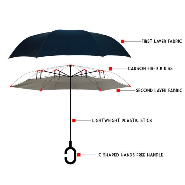 Carbon Fiber Shaft: 8 rib constructions, the carbon fiber skeleton guarantees the umbrella sturdy, stable and durable.
