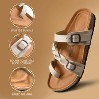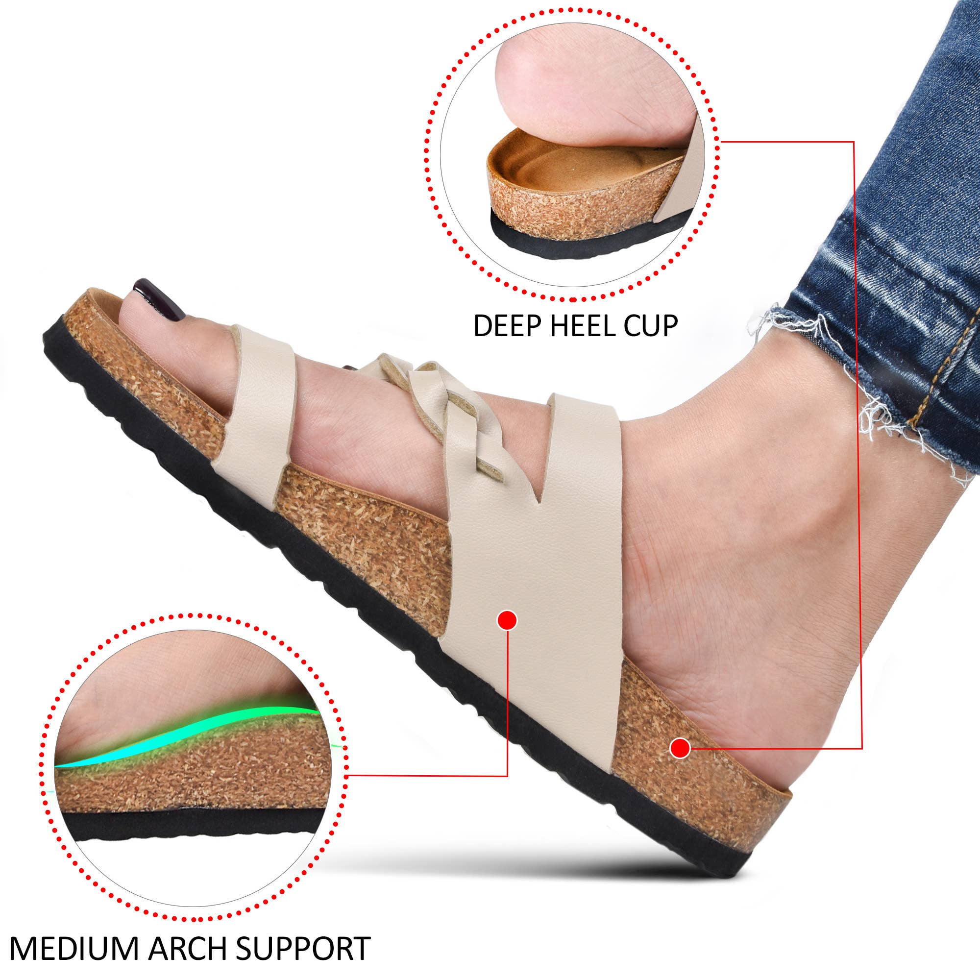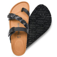 Slip on the Seraph slides and get comfort, style, and support all in one. Featuring two adjustable straps with a functional buckle for a personalized fit. The heel cup and raised toe-bar promote stability and balance, so you can walk carefree while exploring the city. Geometrical patterned outsole helps in increased traction Breathable and soft dual synthetic straps. PU outsole ensures zero tripping chances. Deep heel cup cradles the hindfoot. Ideal choice for high arches. Available in full sizes and fits true to size. APMA Accepted. Imported.