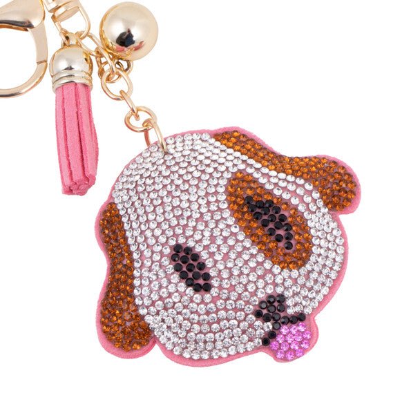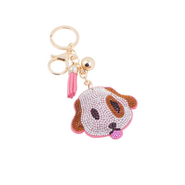 Bling Crystal Dog Face Tassel Keychain-31612LRO-G