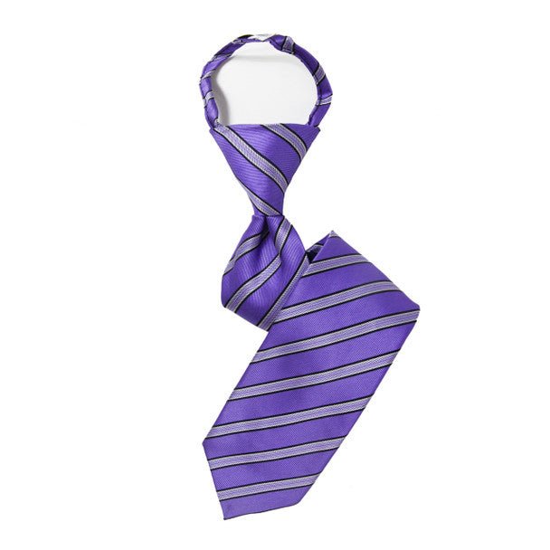 Don't have enough time to spend to tie a knot? Zip closure allows for an adjustable fit and there's no need to tie a knot. Our solid poly zipper ties combine the look of a traditional solid tie with the ease and convenience of a zipper tie. Microfiber Woven Pre-tied Boy's Zipper Tie 14" Height and 2.75" Width Fits most neck sizes Dry Clean Tie Hanger included Imported