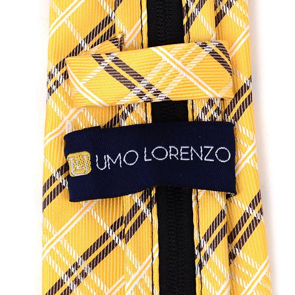 Boy's 14" Woven Plaid Yellow Zipper Tie