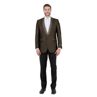 The Tazzio Men's Satin Textured Sport Coat combines sophistication and practicality with its solid textured satin fabric, sleek one-button front closure, and satin shawl collar. It features a welt chest pocket, two flap front pockets, and three interior pockets, including one for your cell phone, all while ensuring comfort with underarm sweat guards. The tailored fit is enhanced by side vents, and the refined interior pic-stitching and French facing complete the look. Ideal for formal events or elevating casual outfits, this sport coat is a versatile wardrobe essential.