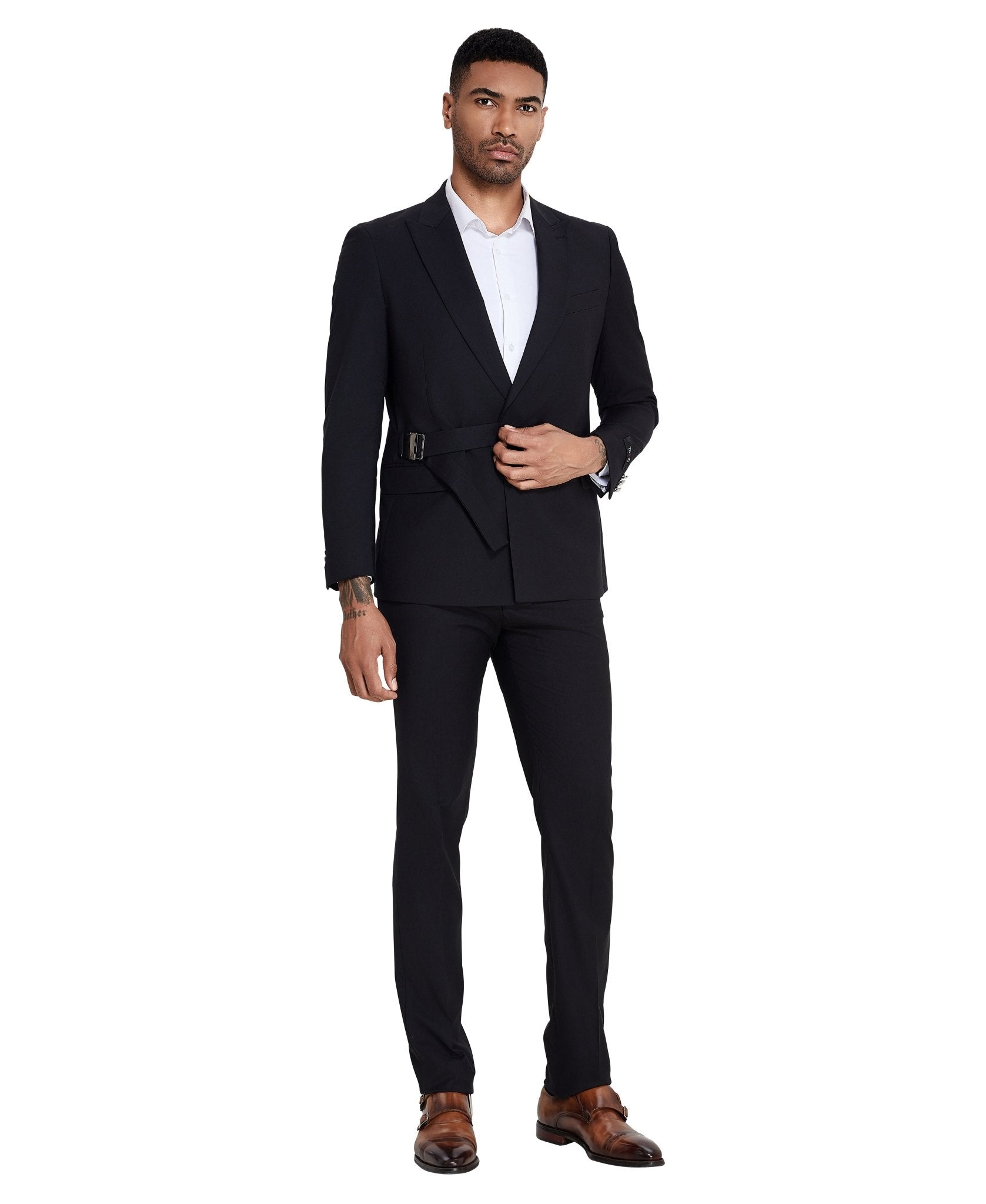 Black 2 PC Peak Lapel Solid Suit