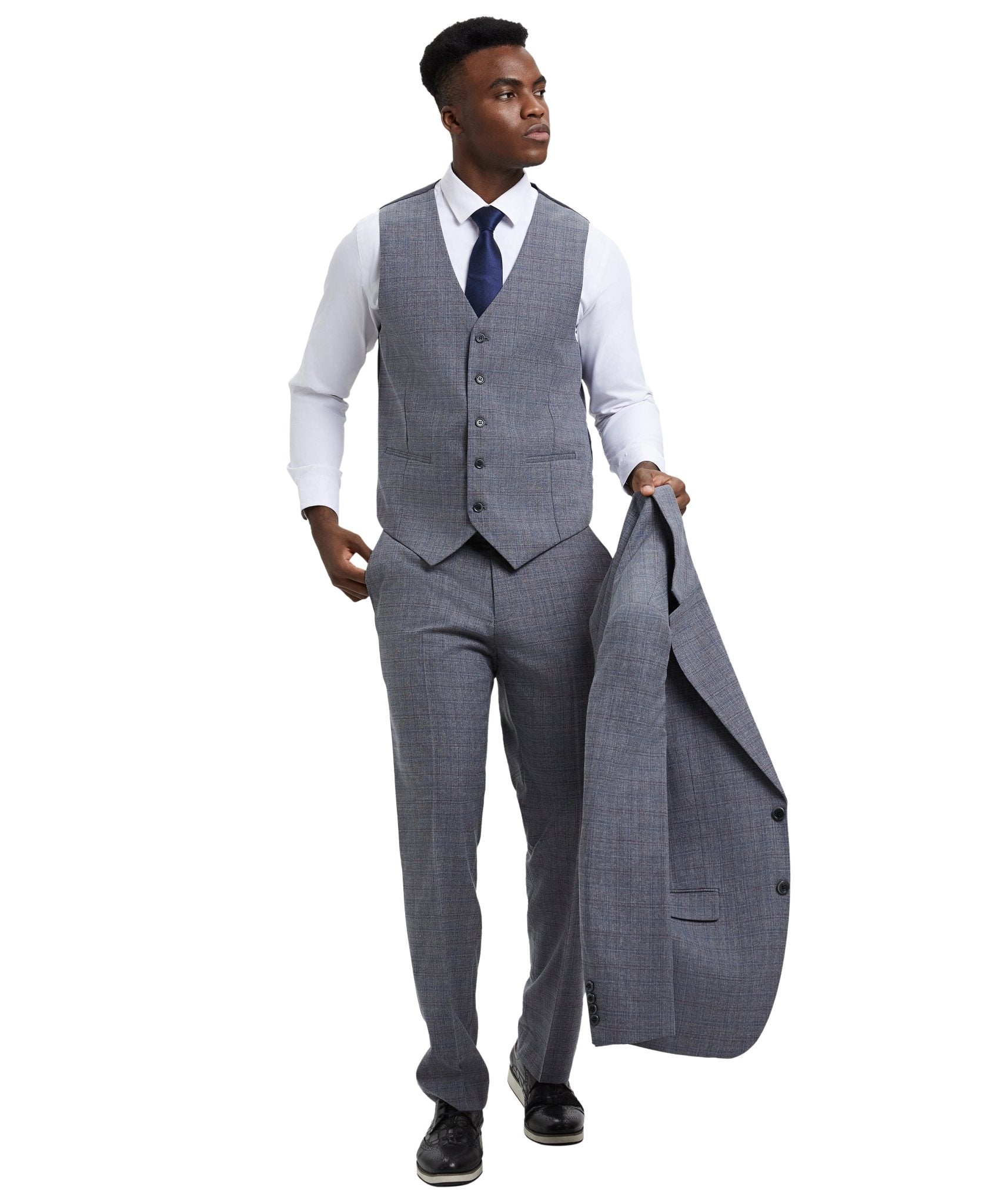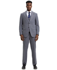 Elevate your style with the Stacy Adams Hybrid-Fit Vested Suit in Plaid Grey. This 3-piece ensemble offers a timeless 2-button closure, notch lapel, and a stylish plaid pattern. The hybrid fit strikes a balance between modern and classic, ensuring comfort and style. Complete with a 5-button vest and flat front pants, this suit is perfect for weddings, meetings, and more. Make a statement with this sophisticated suit – order now.