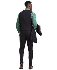 Elevate your wardrobe with the Stacy Adams Hybrid Fit Black Vested Suit. Classic styling meets modern sophistication with its single-button closure, peak lapel, and bold color. The hybrid fit offers a balance of classic and slim fit for comfort and flattering style. The flat front pants and 4-button vest with U-shaped collar add sophistication and individuality. All sizes are jacket sizes, pants unhemmed for customization. Make a statement with style and confidence, whether for a wedding, business, or gala. Experience the perfect combination of classic design and modern sensibility.