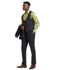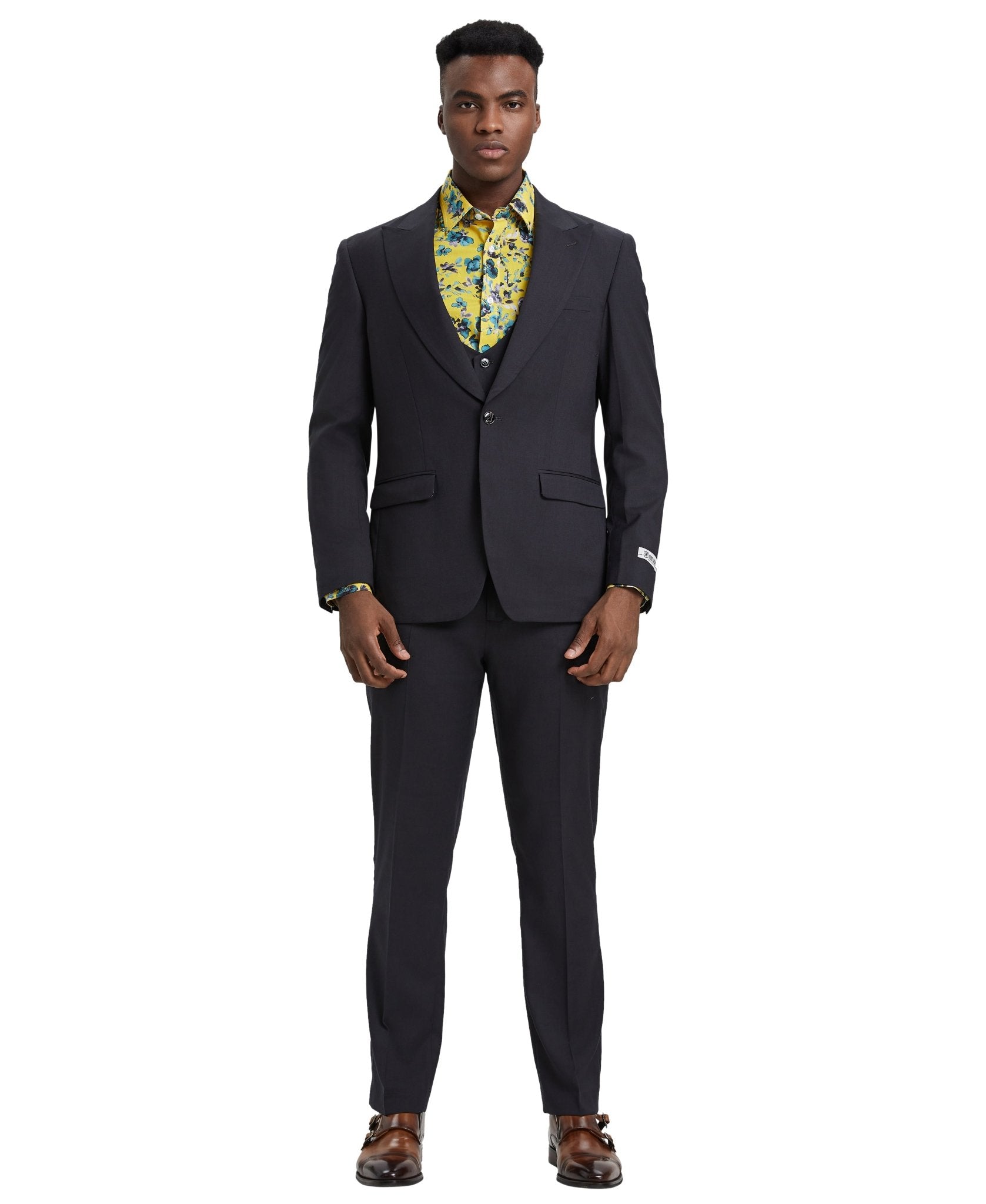 Stacy Adams Hybrid Fit U-Shaped Vested Suit, Solid Dark Gray