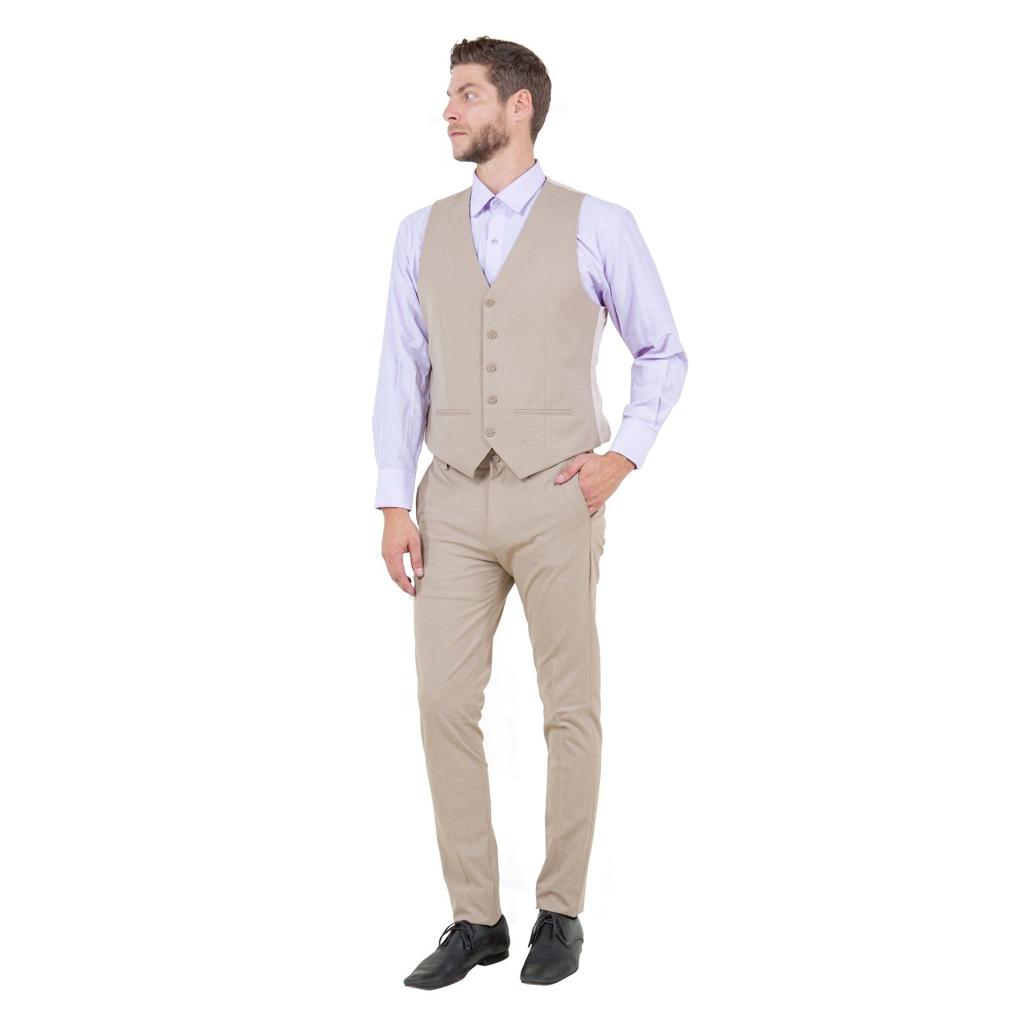 Upgrade your wardrobe with the Zegarie 4-Way Stretch Men's 3pc Suit Set. This sleek, slim-fit suit features a one-button jacket, classic V-neck vest, and flat-front pants with practical pockets. Made from flexible 4-way stretch fabric, it offers unmatched comfort and style for any occasion. Elevate your look with Zegarie���s perfect blend of sophistication and ease.