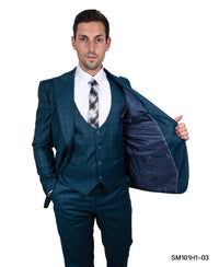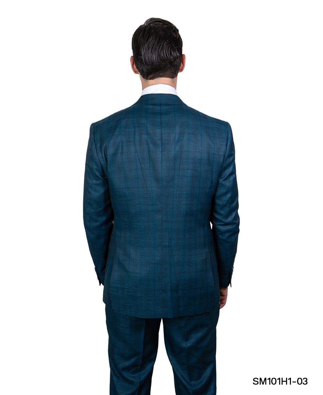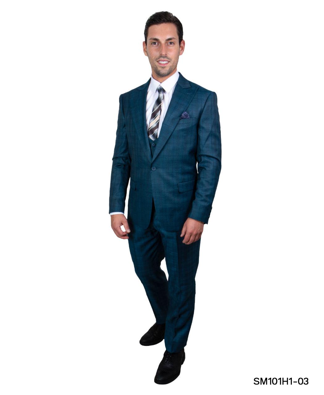 This glen check patterned suit is a solid choice for any special occasion. Our Glen check, Deep Ocean Blue Suit brings together classic and contemporary styling with its one-button jacket and four button vest.
