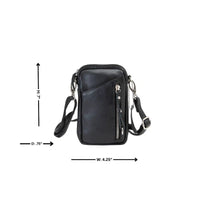 Introducing our Rectangle Crossbody Cellphone Bag. This compact and stylish accessory offers easy access to your essentials, thanks to its diagonal front slip pocket, exterior zipper pockets, spacious main compartment, and luxurious leather zipper pulls and silver metal hardware. Available in multiple colors, make this bag your go-to companion for carrying your cellphone and other small items with effortless organization and flair. Order now and experience both functionality and style in one chic bag!