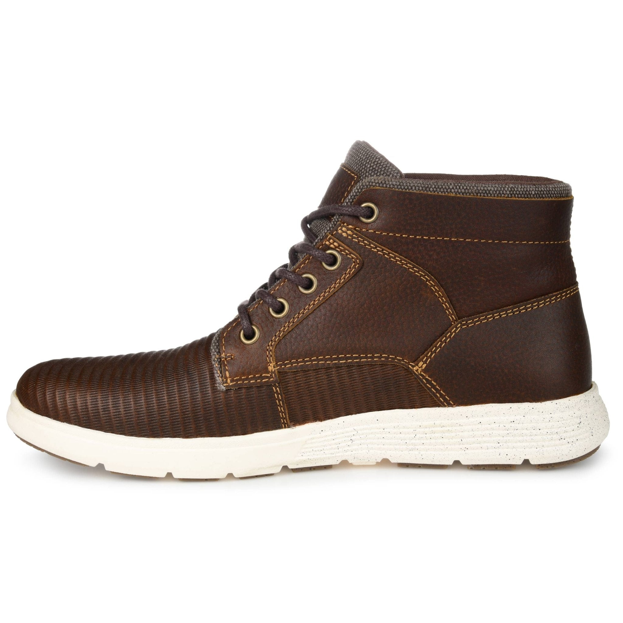 This lace-up sneaker boot with a five-eye closure is easy to pair with just about anything in your wardrobe. The Magnus by Territory features embossed genuine leather uppers accented by a canvas tongue and cuff. With a gripped EVA outsole and supportive high-top silhouette, you can't go wrong.