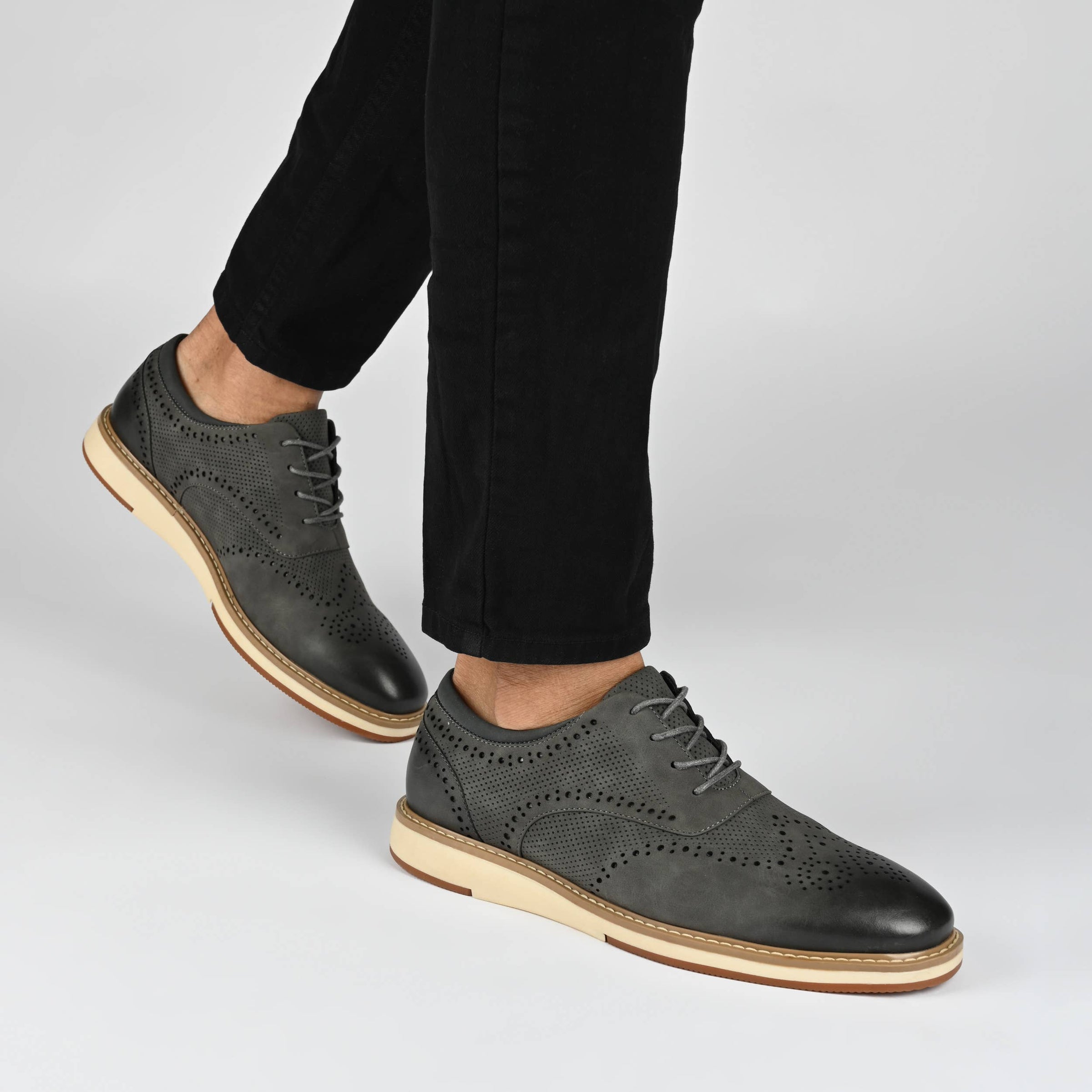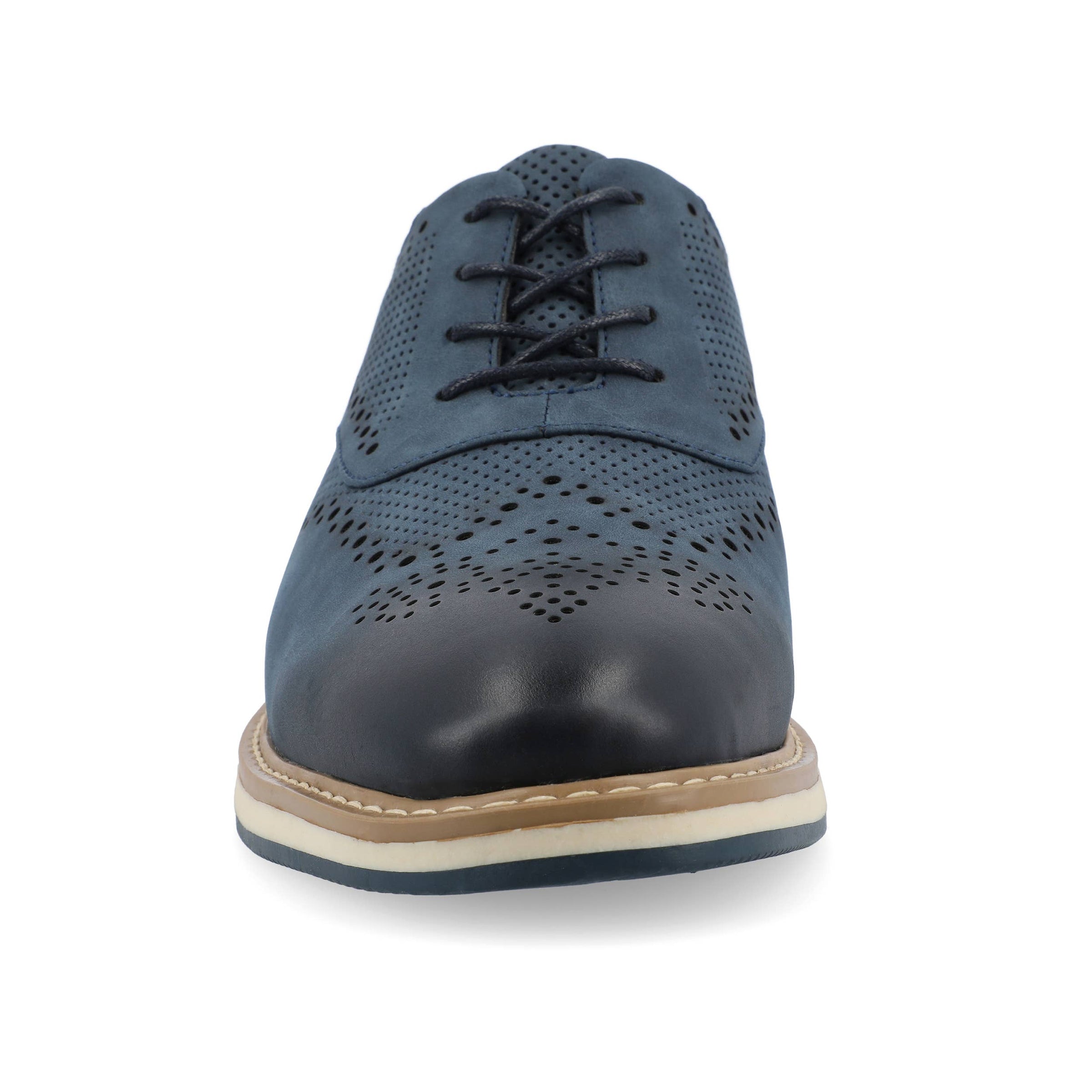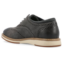 Introducing the Patrick Oxford from Vance Co., a sophisticated and comfortable lace-up option featuring a 1-inch heel, round toe design, and faux leather upper. Crafted with mesh lining and a 12 mm Tru Comfort Foam™ footbed, it offers both style and cushioned support for various occasions. The rubber outer sole ensures reliable traction, making the Patrick a trendy and practical addition to your footwear collection.